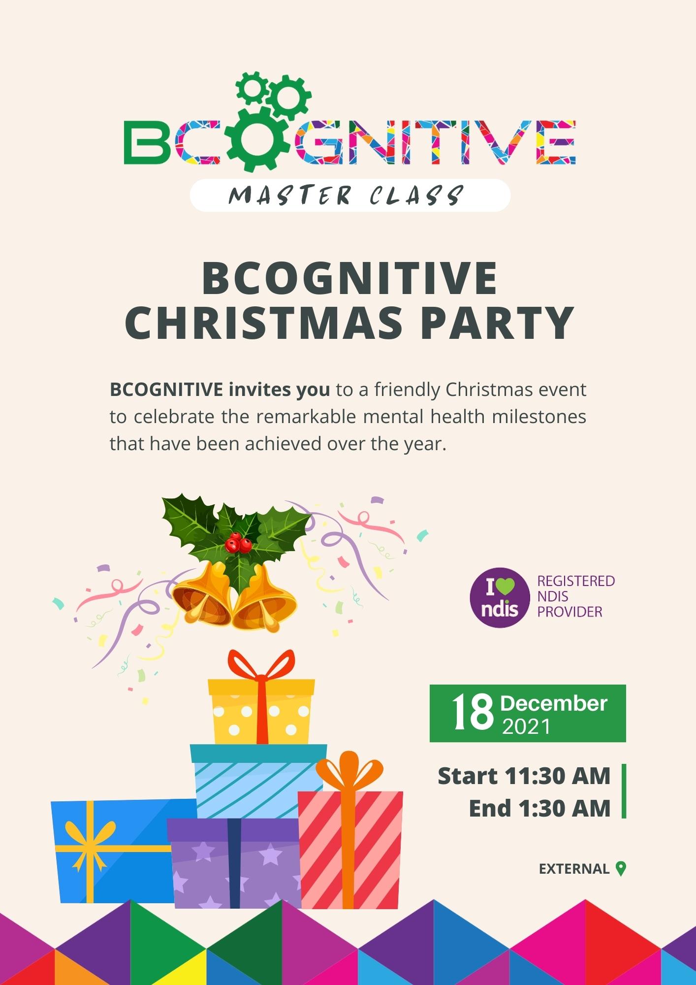 ExternalBCOGNITIVE CHRISTMAS PARTY BCOGNITIVE invites you to a friendly Christmas event to celebrate the remarkable mental health milestones that have been achieved over the year.